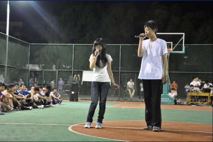乘着这么愉悦的气氛,主持人开始在各班找寻能歌善舞的同学,不少同学都大方的登台表演,《你是我的眼》、《只对你有感觉》等的表演赢得阵阵掌声,新生们此时已是热情高涨,齐呼学长学姐的名字要求表演,主持人张建炜和策划人郑思恬同学也参加的表演。