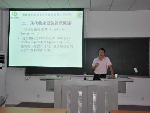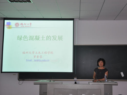 首先,林卫东老师首先就以绿色建筑为主线介绍了节能减排工程和现代物业设施管理。在看到高端的网络技术应用于小区住宅的影像时,在场的同学们无不叹服网络技术的先进水平。在林卫东老师结束讲座之后,罗素蓉老师又以“生态混凝土-城市的绿色风景线”为题,给大家介绍绿色环保混凝土的发展、优势、生产工艺和应用。
