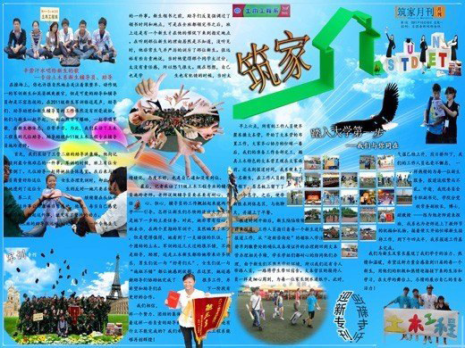 刊名”筑家“,言简意赅,即”传递love,共筑home"的寓意,土木工程系是个大家庭,我们希望通过各个层面增强这种凝聚力,特以此冠名。系报的主要内容采用大事记为主,刊载的新闻突出主题,如迎新专题、新生军训专题、迎新晚会专题等。副刊则录入一些各个部门近期举办的精彩活动,亦可以是名师访谈,学长寄语等耳熟能详的内容。对于系报中大家关注度高的笑话、漫画、搞笑图片,我们也将量力而行,在编排中空出板块,顺应大部分大学生审美方向。