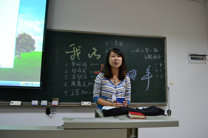 学习与生活部分由学习委员郑熙同学主持,她让同学们了解到了在大学的学习生活中该怎样的在放松之余又不落下学习。随后进入到健身与爱好部分,魏兴华同学用诙谐且具有亲和力的语言将健身与爱好完美的与生活相结合。一阵欢声将同学们带入了最后的“大学四年应该怎么过”部分,主要由生活委员官虹虹同学主持,官同学准备十分充分,她为自己的演讲制作了PPT并且还下载了一部视频让大家能更好的了解和认识大学生活。视频可谓是整个班会中的亮点之一,讲述的是大四学生们毕业后的一些遗憾,全班同学乃至老师助教无一不为之动容,陈丽丹老师还差点落泪。