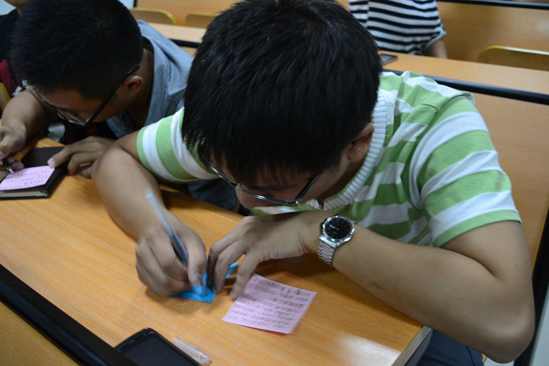 在整个班会过程中除了这四个部分外,还加入了“你画我猜”这个游戏,三组游戏人员表演极具想象力,尤其是杨滔助理的表演,让全班同学笑到抽筋。在班会的最后,在座每一个人都在一张便利贴上写上了对自己未来的期望以及对未来的自己想说的话,同学们的热情都很高,有些同学甚至一张便利贴不够,写完后所有的便利贴都保存到了一个信封里,在未来约定的那个时间打开。最后,陈丽丹老师师及班长王文坚为此次的班会都做了细致的总结,陈丽丹老师对这次班会给予了很高的评价。