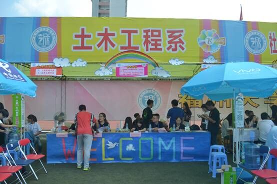 2015年9月12日土木工程系的迎新工作在东操拉开帷幕,虽然当天的天气有些炎热,但迎新工作我们仍有条不紊的进行着。每位系学生会成员都积极参与到布置工作中,在系辅导员的带领下,各级学长学姐倾心的投入到工作当中,现场气氛一片祥和,一幅幅崭新的面孔让本就活力四射的学校更加生机勃勃。